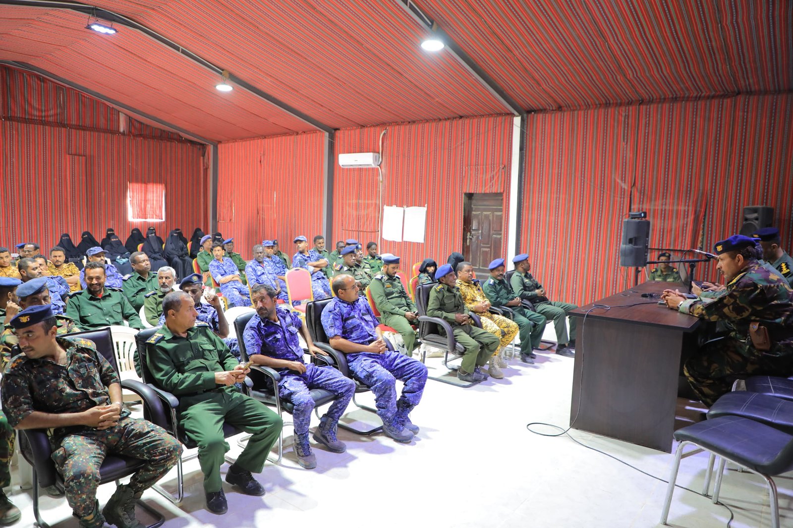 وبدأ البرنامج التوعوي والتوجيهي المعنوي بمحاضرتي الاعداد والجاهزية والحس الأمني والوعي والتضحية قدمهما المقدم خليل المعافري، فيما تناول النقيب عبدالله السيد ثلاث محاضرات، التحديات الامنية ممثلة بالتحدي الانقلابي لمليشيا الحوثي الارهابية وانعكاساتها العامة، والثانية تمحورت حول العقيد الأمنية، والمحاضرة الثالثة القيم العليا والمؤسسية والأخلاقية لرجال الأمن والشرطة.
